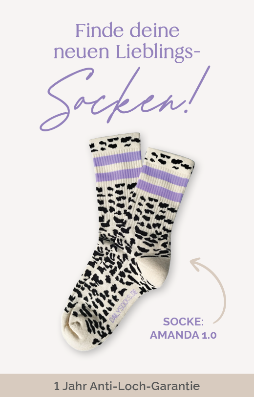 Als besonderes Qualitätsversprechen für unsere Kundinnen geben wir eine 1 Jahr Anti-Loch-Garantie haben auf alle DAILYSOCKS.