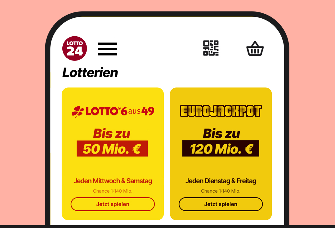LOTTO24 ist dein ganz persönlicher Lotto-Kiosk im Internet – ohne Ladenschluss. Bei uns spielst du jederzeit, und wo auch immer du bist, online Lotto – bequem von zuhause oder unterwegs mit unserer beliebten Lotto-App.