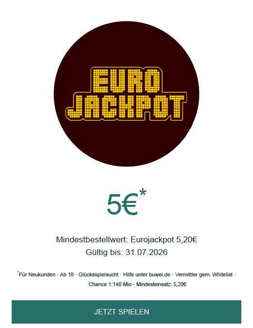 Spielen Sie bei uns die LOTTO Klassiker LOTTO 6aus49 und Eurojackpot. Nutzen Sie Ihren Neukundenrabatt und sichern Sie sich Ihre Chance auf die Millionen!
